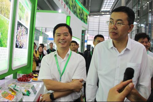 深圳市副市长艾学峰、深圳市经贸信息委副主任胡小清、深圳市贸促委主任叶健德等领导莅临基因组所展区视察指导。黄三文详细介绍了颠覆性创新项目“优薯计划”进展和基因组所系列农业创新育种科研工作,在品尝“深爱系列”新品种番茄后,艾学峰对基因组所创新育种科研工作表示认可和肯定,希望基因组所加大科研力度、加快育种速度,为农业插上科技翅膀,推动深圳生物创新育种和健康生态产业的发展。