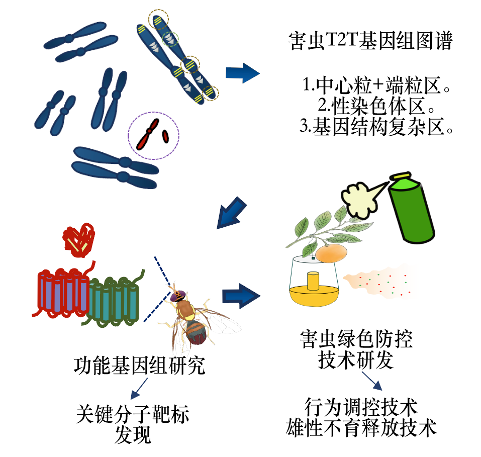 近年来,研究人员陆续发布了多个橘小实蝇基因组版本,然而,这些基因组大多基于混合个体组装,尤其是在中心粒、性染色体这些富含重复的基因序列区域有较多的“盲区”,最后得出的“地图”并不算完美。