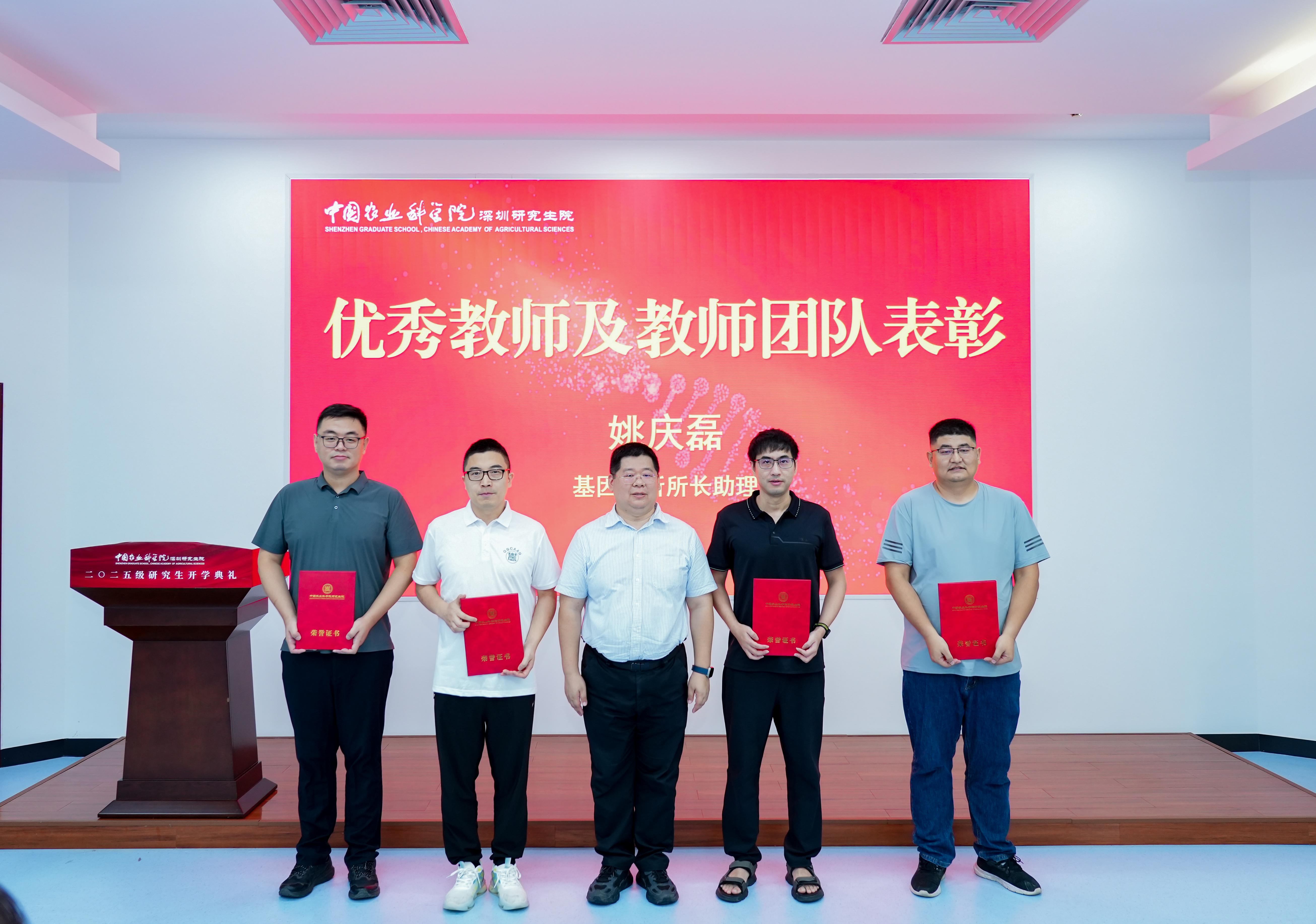 典礼上,姚庆磊为深圳研究生院2024-2025学年优秀教师及教师团队代表颁奖。植物中心商连光研究员、2025博士研究生项溢馨和2024级博士研究生罗豪分别作为导师代表、新生代表和在校生代表发言。