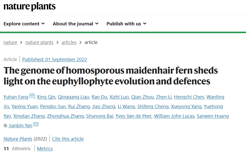 原文链接:The genome of homosporous maidenhair fern sheds light on the euphyllophyte evolution and defences | Nature Plants