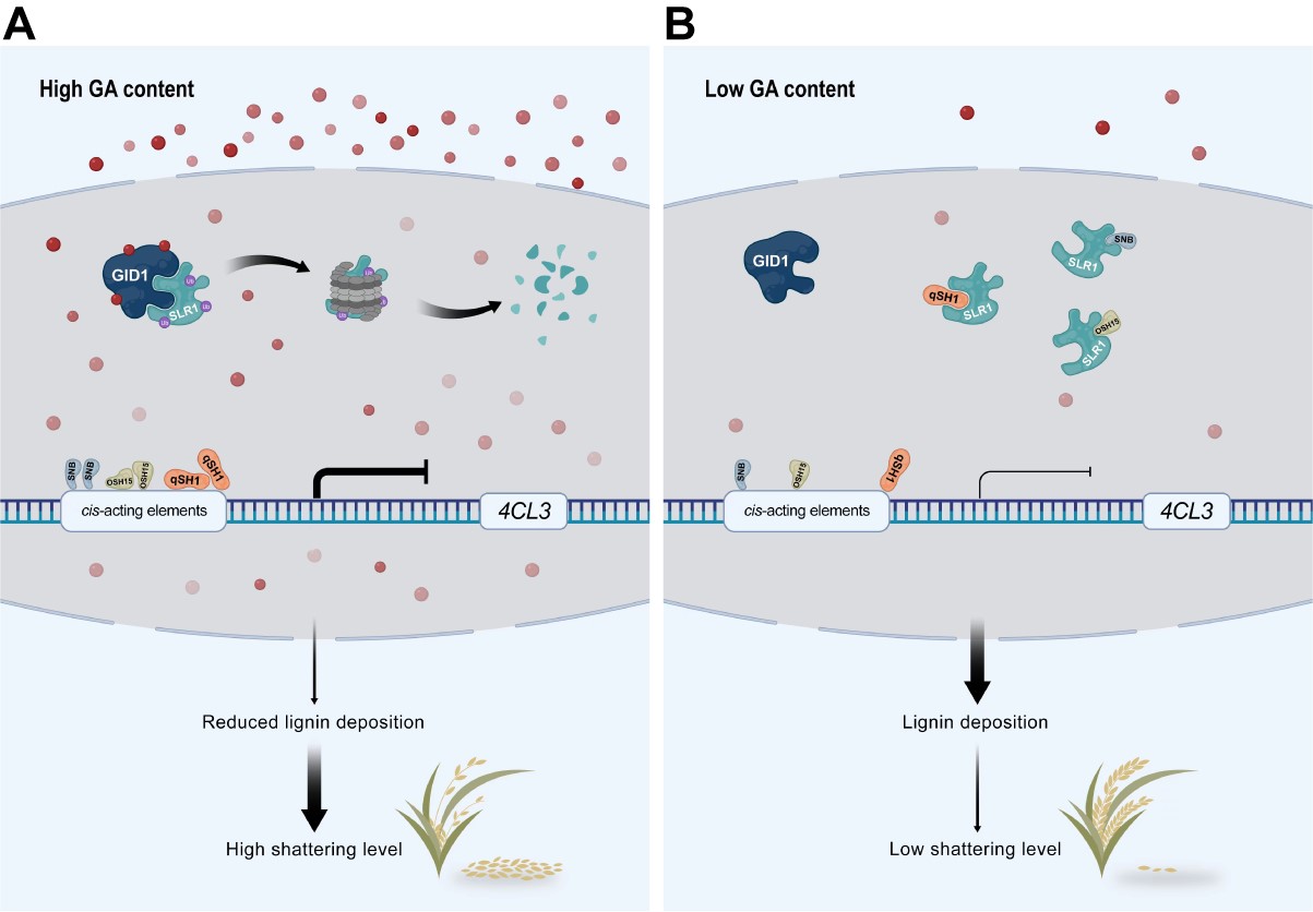 基因组所汪泉团队初步解析赤霉素影响水稻落粒性的分子机制