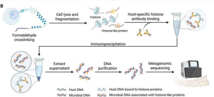 二是基于染色质免疫沉淀(ChIP)的宿主DNA去除技术,该技术利用宿主与微生物染色质的结构差异实现富集。甲醛交联使宿主染色质保持稳定,可被抗组蛋白抗体选择性识别并免疫沉淀。微生物DNA则留存于未结合的上清液中,经纯化后可用于宏基因组测序。该策略的关键在于抗体特异性及交联条件优化,以确保广泛适用于不同植物组织与微生物群落。