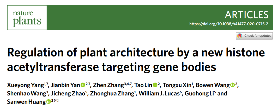 科研进展| 基因组所协同创新研究发现植物株形调控新机制