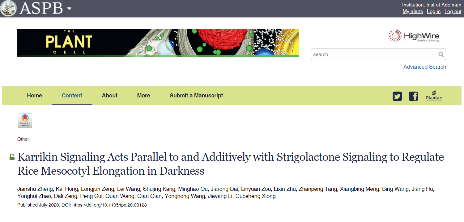 中国农业科学院深圳农业基因组研究所(以下简称“基因组所”),联合中国科学院遗传与发育生物学研究所、中国水稻研究所以及南京农业大学的研究团队,在Karrikin和独脚金内酯信号转导途径共同调控水稻中胚轴发育的分子机制研究中取得重要进展。