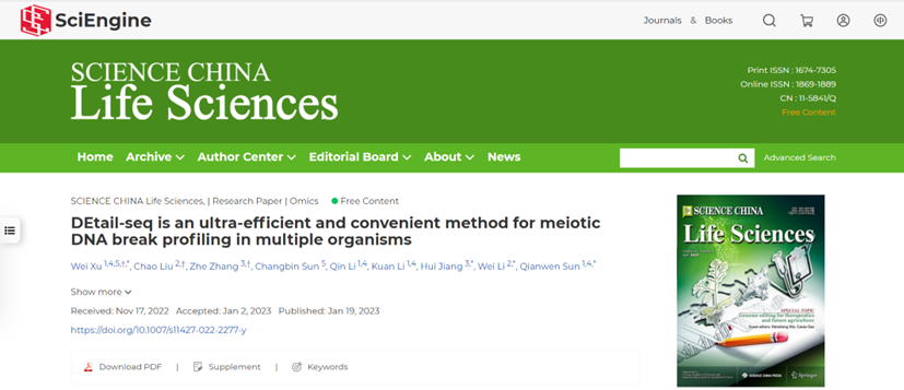 近日,基因组所联合清华大学、广州医科大学、北京大学第三医院成功开发新型DNA断裂检测技术。该技术能够在多个物种中高效地检测出减数分裂DNA双链断裂位点的3’末端,是一种接近单核苷酸水平的超高分辨率全基因组DNA断裂位点检测方法。基于此技术,研究人员成功绘制了酿酒酵母、小鼠和人类的减数分裂DNA双链断裂图谱。相关研究成果发表在《中国科学生命科学(SCIENCE CHINA Life Sciences)》上。