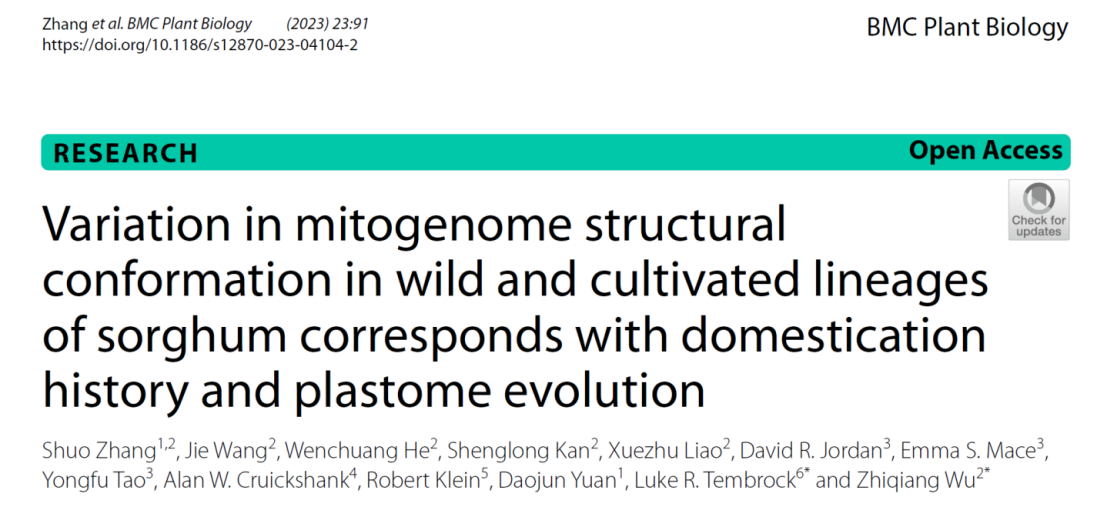 近日,基因组研究所武志强课题组在《BMC系列的植物生物学(BMC Plant Biology)》上发表了题为”Variation in mitogenome structural conformation in wild and cultivated lineages of sorghum corresponds with domestication history and plastome evolution”的文章,研究组装了六个栽培种和一个野生高粱线粒体基因组,研究发现高粱线粒体基因组的构象差异与高粱驯化历史之间的联系,从高粱线粒体基因组到细胞核内存在广泛的序列转移,并且不同物种间存在巨大差异。该研究加深了对高粱驯化历史和细胞器基因组进化的了解,为高粱育种改良提供了理论基础。