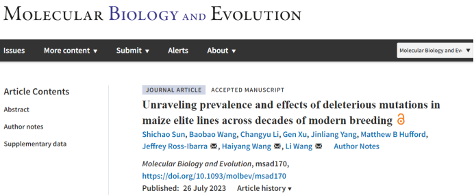 近日,基因组所王丽课题组联合多家单位在《分子生物学与进化(Molecular Biology and Evolution)》(IF = 10.7)上在线发表了题为 “Unraveling prevalence and effects of deleterious mutations in maize elite lines across decades of modern breeding” 的研究论文,深入揭示了中美两国玉米在不同育种年代有害突变的改变模式及其对表型性状的影响,为玉米未来的育种改良工作提供重要的分子靶标。