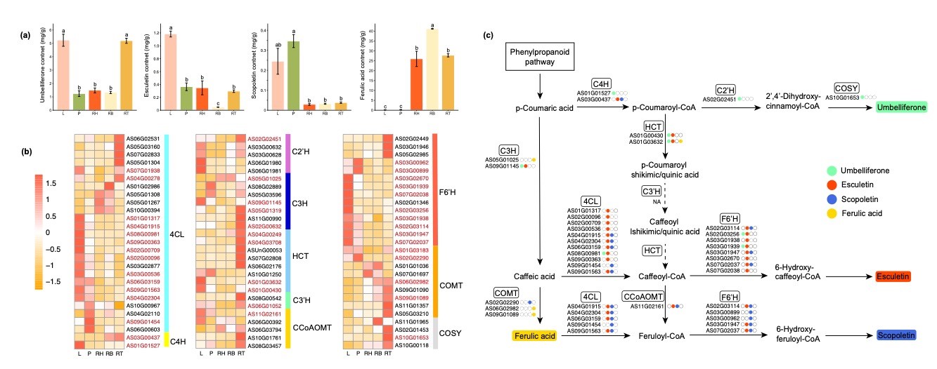研究人员通过基因组、转录组和代谢组分析,对当归简单香豆素合成基因及其转录因子进行研究,筛选了当归中简单香豆素合成和调控的关键基因。如调控伞形花内酯合成的COSY,秦皮乙素合成的F6’H和相应的转录因子NAC和MYB等。以上结果为香豆素类化合物的生物合成提供了新的思路,并为加快香豆素类化合物的遗传学研究和医学应用提供了基础。