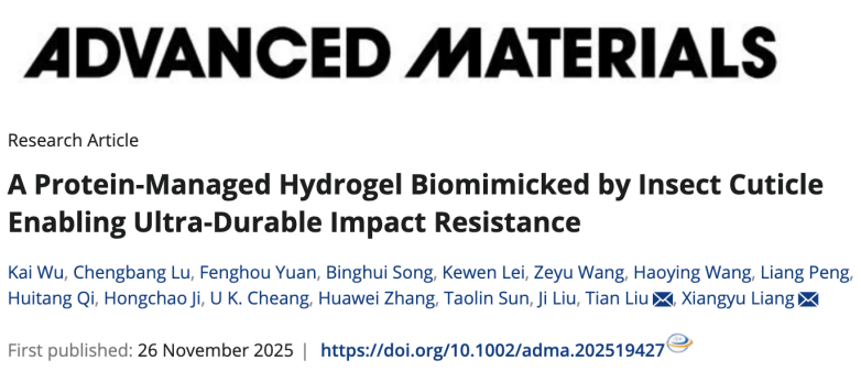 Advanced Materials | 受亚洲玉米螟启发,基因组所梁翔禹团队研发出具有超强耐冲击性的仿生水凝胶