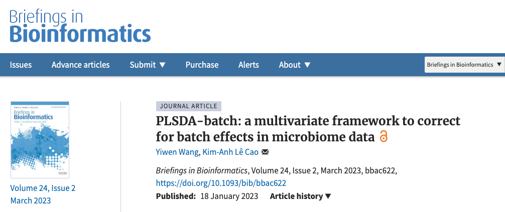近日,《生物信息学简报(Briefings in Bioinformatics)》 在线发表了基因组所王怡雯课题组联合墨尔本大学的研究论文,题为“PLSDA-batch:a multivariate framework to correct for batch effects in microbiome data(PLSDA-batch:校正微生物组数据中批次效应的多变量框架)”。该研究开发了一种基于偏最小二乘判别分析(PLSDA)的多元非参数批次效应去除方法:PLSDA-batch,该方法可用于校正微生物组数据中由非实验因素导致的结果差异(批次效应)。
